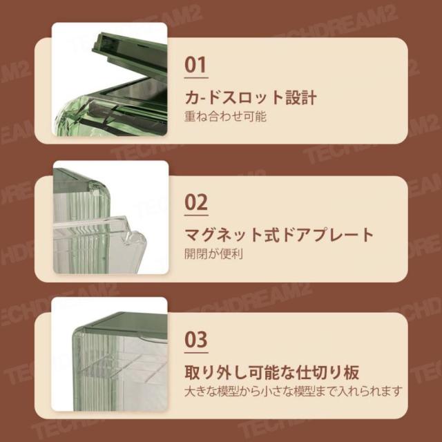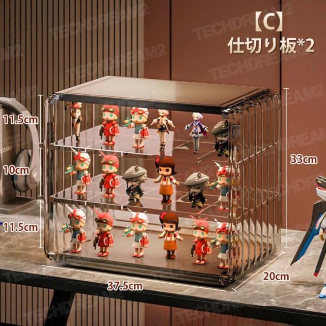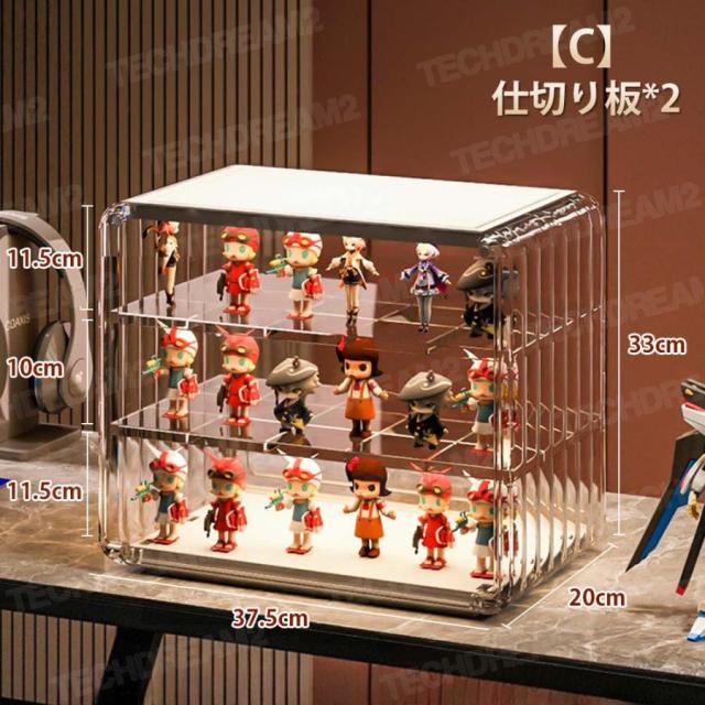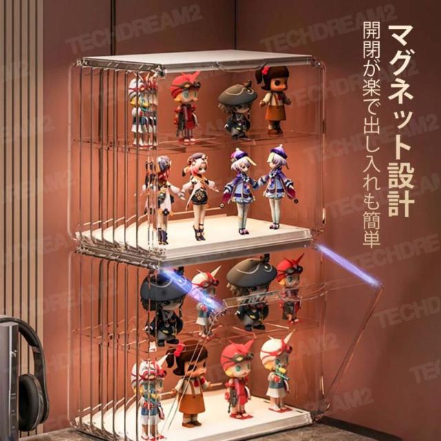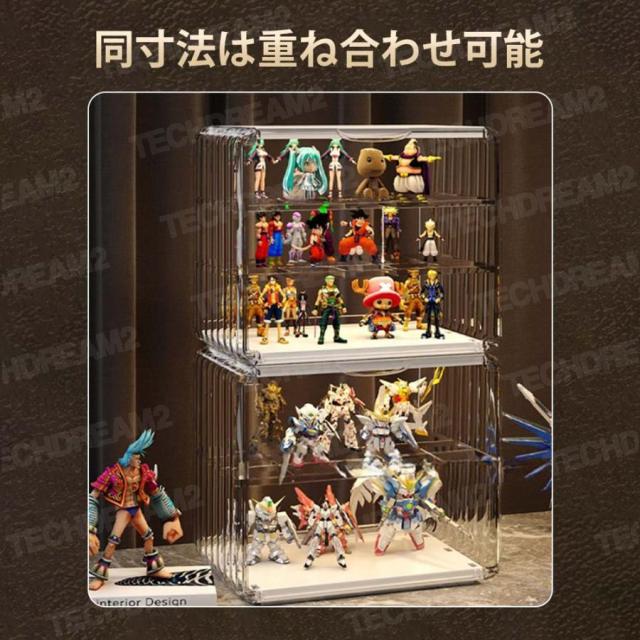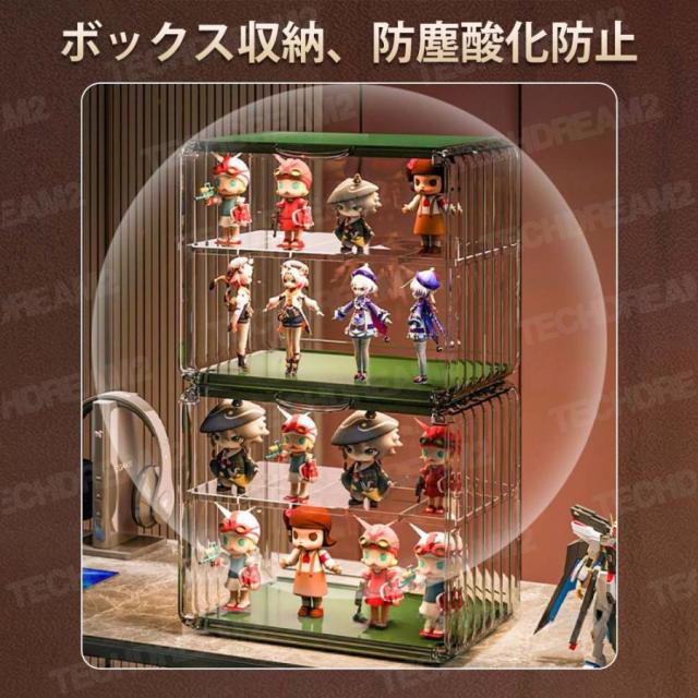 全方をアクリルで囲むデザインの為、大切なコレクションを埃や汚れからしっかり守ります。