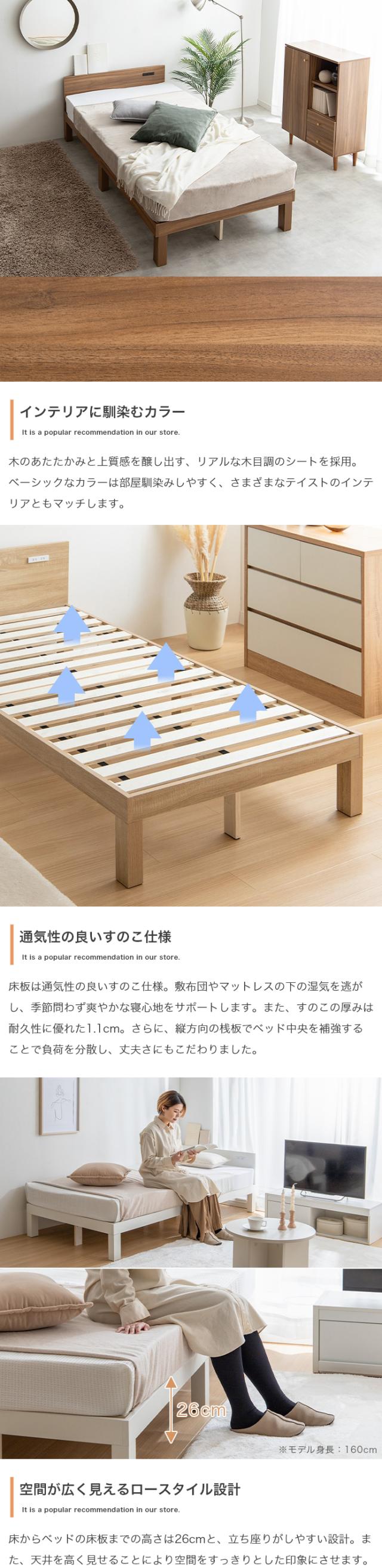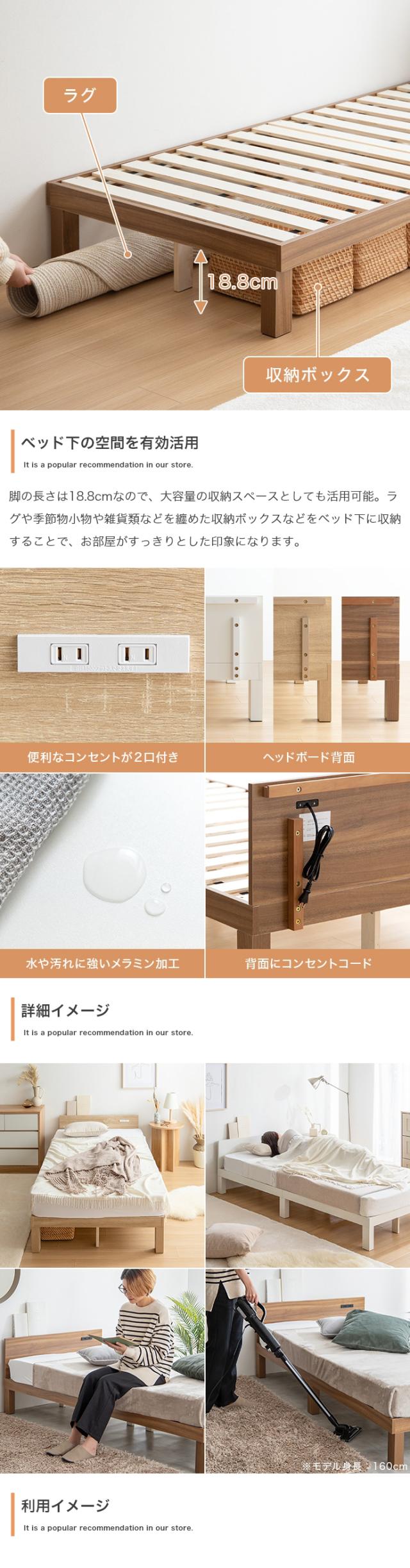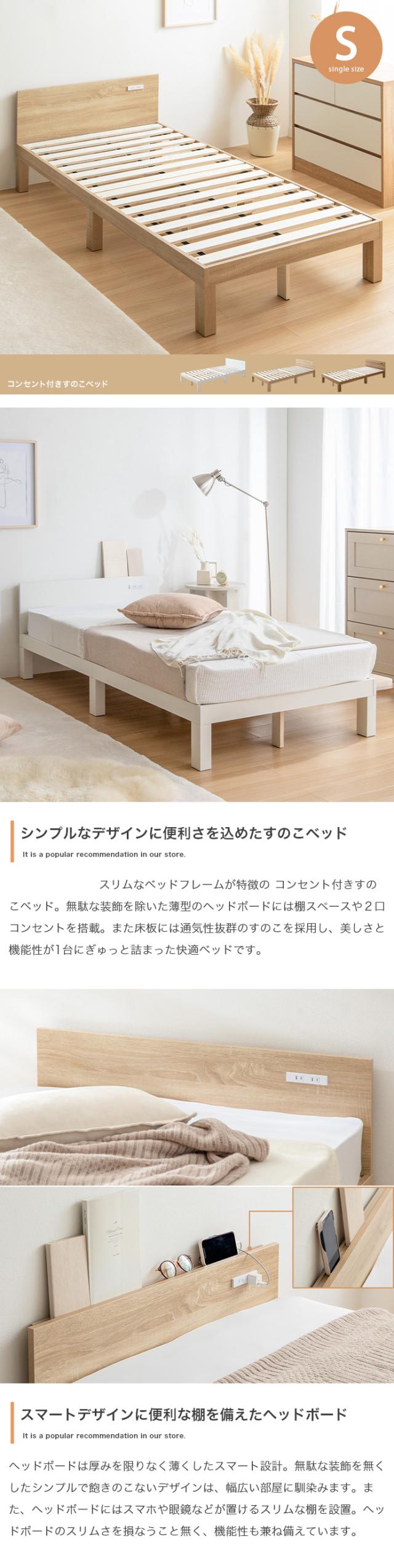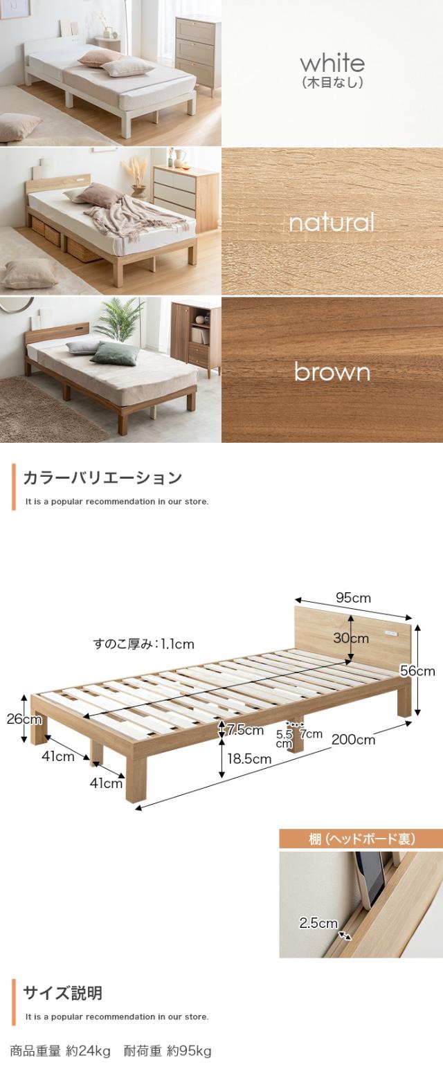 EERU ベッド コンセント付きベッド カラー全3色対応 幅95cm 奥行200cm 高さ56cm 組み立て式 ※マットは付いておりません。