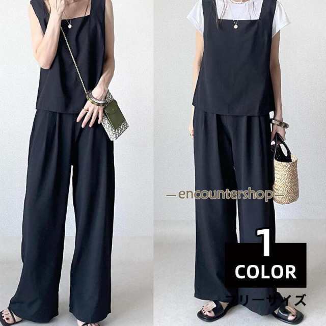 セットアップ レディース 夏新作 ワイドパンツ キャミソール 薄手 ルームウェア 上下セット ノースリーブ ガウチョパンツ ロングパンツ 可愛い 夏コーデ