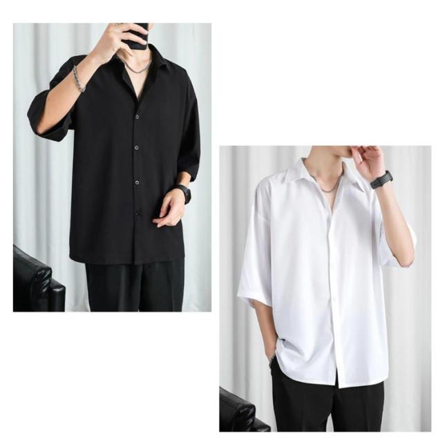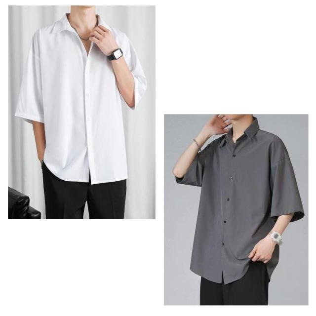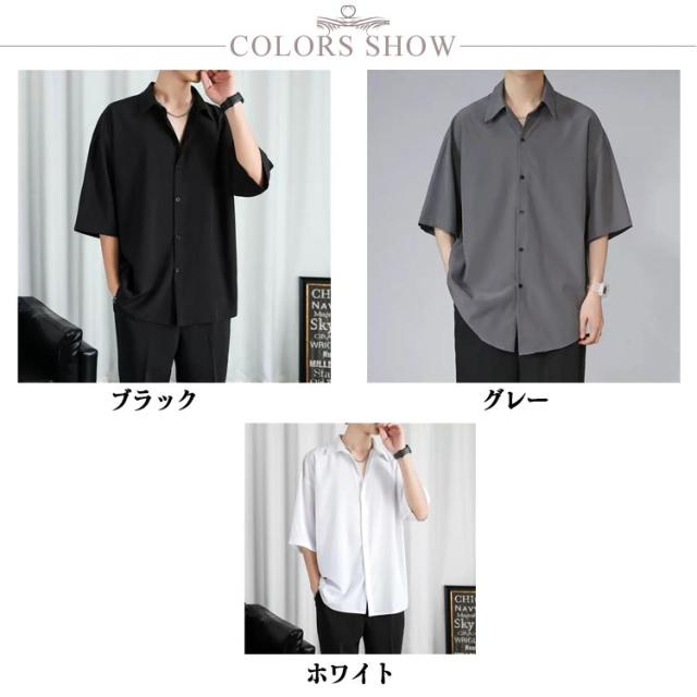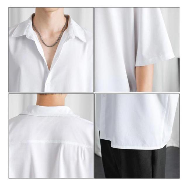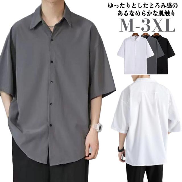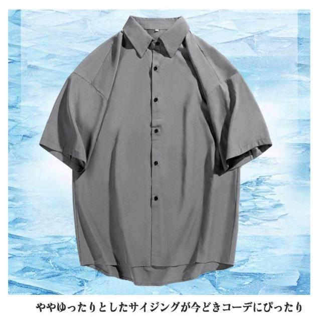 ブラウス ビジネス 半袖シャツ きれいめ カジュアル カジュアルシャツ とろみ 涼しい メンズ レギュラーカラー スリット ワイシャツ リラックス オフィスカジュアル 上品 トップス