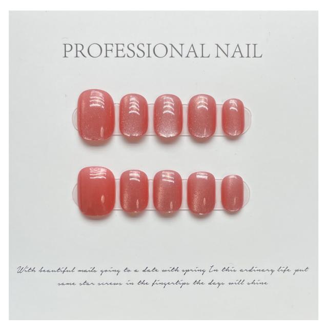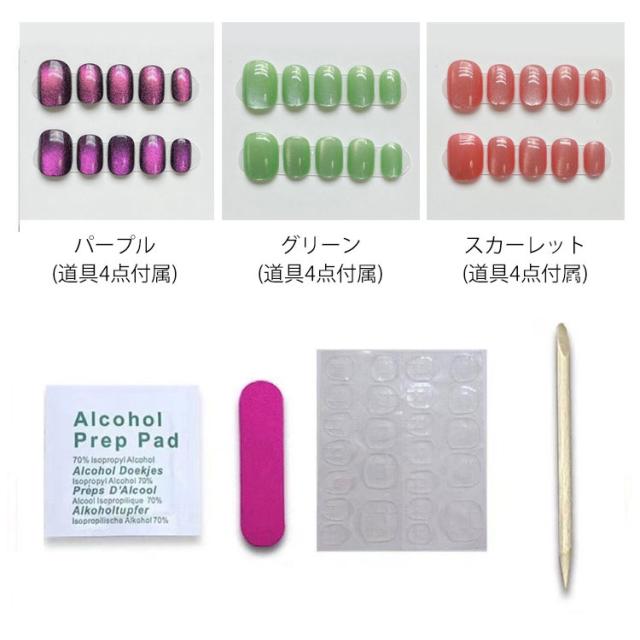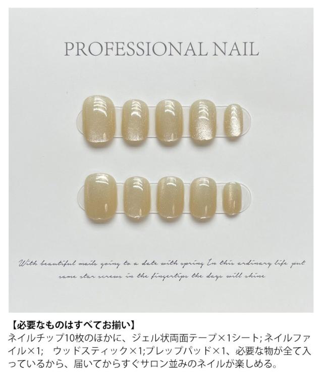 | 高見えするキャッツアイネイルチップ、繰り返し使える。 【上品&オシャレ】本物のジェルで仕上げた究極のクオリティ。爪の先までつながるふっくり感と光が爽やかにとどまる光沢感、トップコート仕上げよりも長持ちします。全体をジェルコートで強度もUP!シンプル?華やかなスタイルまで幅広くお使いいただけます。普段のオシャレやオフィスシーン、卒業式、入学式などでも大活躍。 【使いやすい】ジェル状テープ付属で、貼るだけのネイルチップ。不器用な初心者でも簡単に美しく仕上げる事が出来ます。その日のファッションに合わせて気軽にコーディネート出来ます。 【繰り返し使える&経済的】 最短10分で手軽にネイルチェンジ!学生さんや主婦の方にもぴったり!普段にも特別な日にも使えるデザイン。アクセサリー感覚で取り外し可能、繰り返し何度も使えます。(粘着テープ1回分付属) 【貼るだけですぐに本格ネイルの出来上がり】普段はネイルが出来ない方や忙しくてサロンに行けない方にぴったり。 【必要なものはすべてお揃い】ネイルチップ10枚のほかに、ジェル状両面テープ×1シート; ネイルファイル×1; ウッドスティック×1;プレップパッド×1、必要な物が全て入っているから、届いてからすぐサロン並みのネイルが楽しめる。 ネイルチップ専用粘着テープも販売しております。【商品番号hakjf857】ご検索ください。 | |