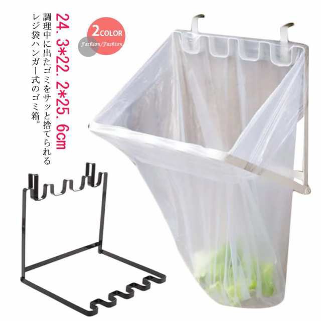 | 調理中に出たゴミをサッと捨てられるレジ袋ハンガー式のゴミ箱。 シンプルなデザイン、接着剤などは不要、サイズが合う扉(厚さ<1.8cm)に掛けてレジ袋を引っ掛けるだけで調理中に出るゴミをその場で!とても便利です。 折り畳み式なので使わない時は折り畳んで収納すれば邪魔にならなく、スッキリ省スペースです。 1つのハンガーの袋掛けに複数のレジ袋を掛けたり、ハンガー自体を複数掛けて、細かなゴミの分別も可能です。 大きく口が開くので、ゴミをラクラク捨てられます。たたんで口を閉じると、臭いが出るのを防げます。 | |