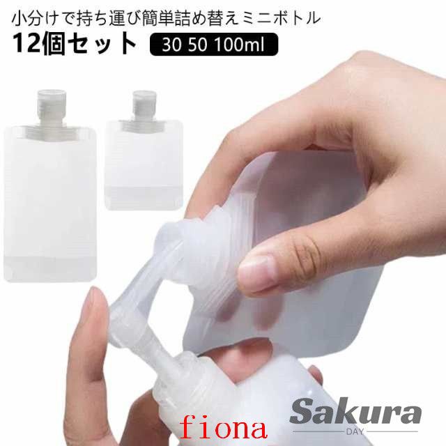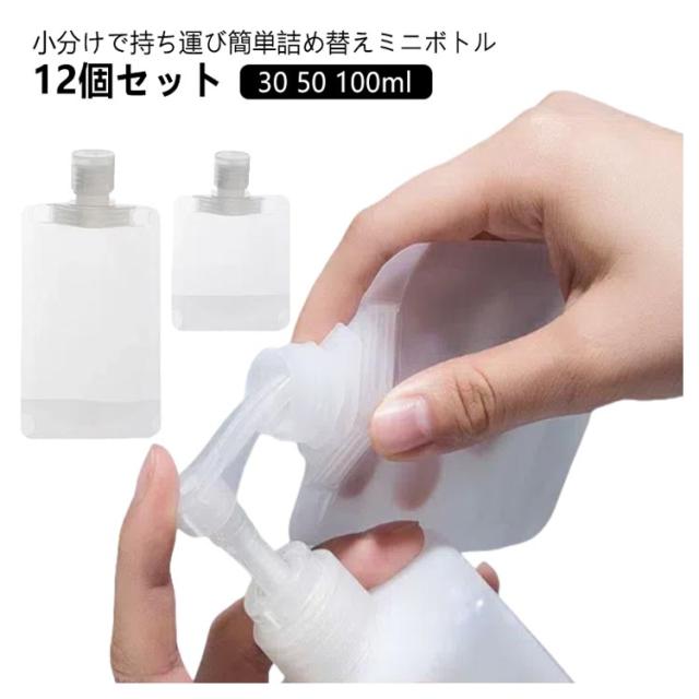 漏れ防止 詰め替え容器 携帯 トラベルボトル パウチ 液体 30 容器 100ml 化粧水 日焼け止め 50 省スペース 密封 便利 12個セット トラベル 出張 収納 お泊り ジム 持ち運び 旅行 つめかえ 詰替 使い捨て 仕分け 小分け シャンプー