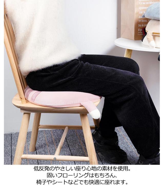 | 耳やしっぽが付いた可愛らしい、猫の後ろ姿を座布団に! もちふわっとする低反発クッション。 低反発のやさしい座り心地の素材を使用。 固いフローリングはもちろん、椅子やシートなどでも快適に座れます。 触り心地もクッション性も、まとめて気持ちいい質感にこだわりました。 愛くるしいデザインにピッタリな生地感です。 クッションとして使えるだけでなく、ペットのクッションとして使えます。ふかふかで猫ちゃんも安心。 | |