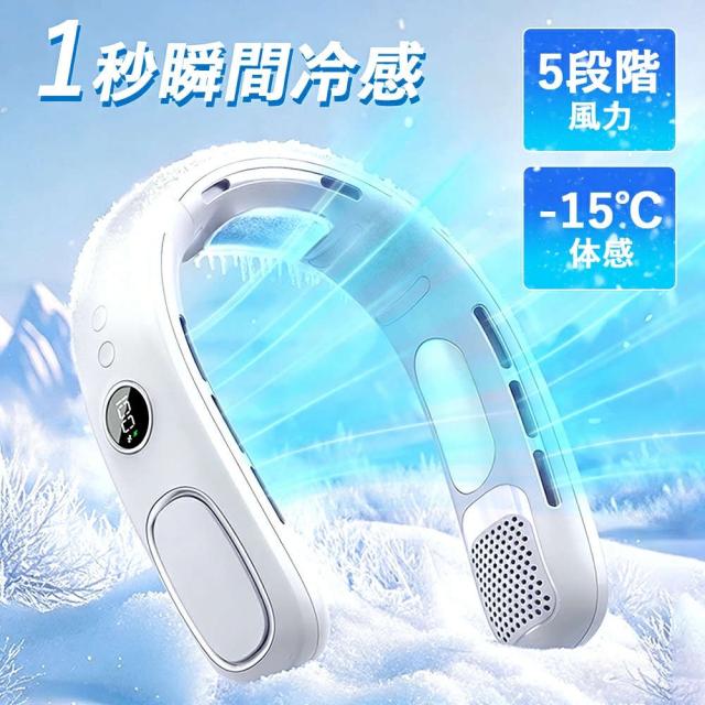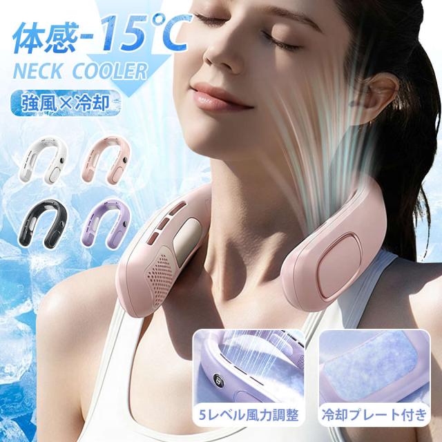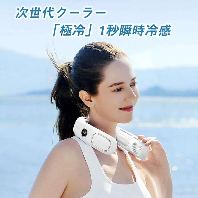 【ペルチェ素子急速冷却】ネッククーラー 首掛け扇風機 冷却プレート ペルチェ 瞬間冷却 ネックファン 5段階調節 残量表示 羽根なし 首掛けファン 携帯便利 軽量 長時間連続稼働 液晶ディスプレイ 熱中症暑さ対策通勤/旅行/室外作業PSE