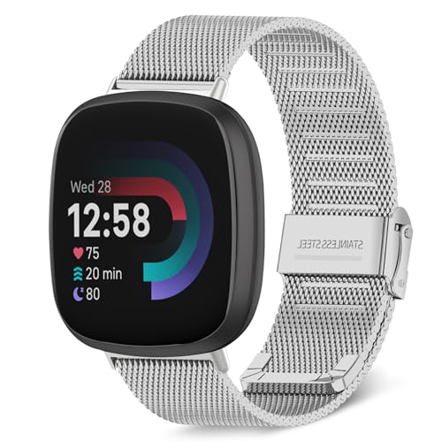 Fitbit Versa 4 / Fitbit Versa 3 / Fitbit Sense 2 / Fitbit Sense バンド 金属ベルト ステンレス製 替えベルト 長さ調節可能 男女兼用 Fitbit Versa 4 / Fitbit Versa 3 / Fitbit Sense 2 / Fitbit Sense 交換バンド (シルバー)