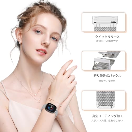 【対応機種】Fitbit Versa 4 /Fitbit Versa 3 /Fitbit Sense 2 /Fitbit Sense 対応のステンレス製金属バンドです。(適切な機種のバンドを正確に購入お願いします