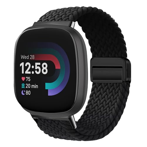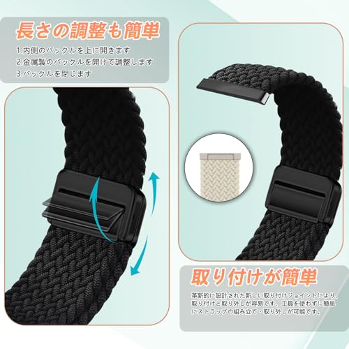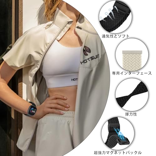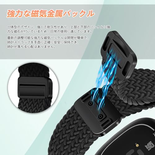 Fitbit Versa 4 / Fitbit Versa 3 / Fitbit Sense 2 / Fitbit Sense 交換ベルト 磁気バックル 交換編組弾性ナイロン 替えベルト 調節可能 通気性 柔らしい 軽量 洗える コンパチブル Fitbit versa 4 / versa 3 / Fitbit Sense 2 / Sense (ブラック)