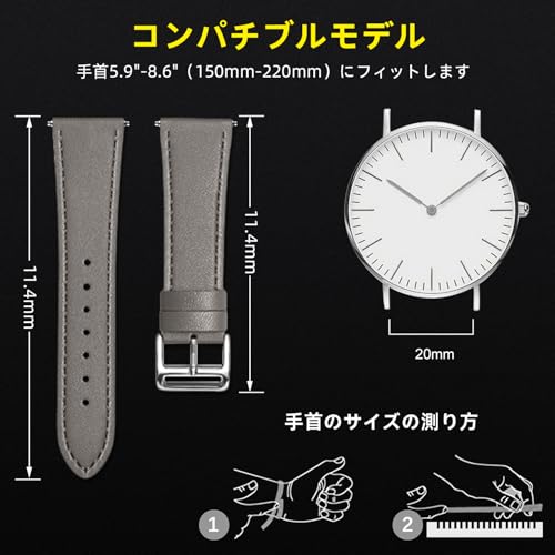 20mm レザーバンド GARMIN(ガーミン) vivoactive 6 / erunner 165 / 165 Music / Vivoactive 5 / Vivomove Trend / Venu Sq 2 交換バンド 換えバンド 交換ベルト 腕時計バンド ビジネス風 柔軟 男女通用 Garmin vivomove Sport / Venu 2 Plus バンド アイボリーグレー