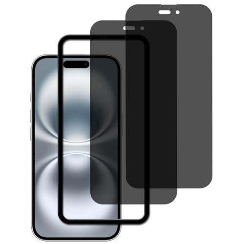 iPhone16 覗き見防止 フィルム (2枚) ガラスフィルム + ガイド枠付き 全面 保護フィルム 強化ガラス フィルム