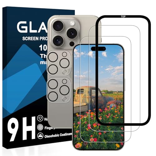 iPhone 15 pro max ガラスフイルム 2枚 液晶フィルム + 2枚 レンズ保護フィルム + ガイド枠付き 強化ガラス 液晶 保護フィルム 撥油性 超耐久 高光沢 超薄型 硬度9H 指紋防止 衝撃吸収 高透過率 飛散防止 貼り付け簡単 気泡なし 極薄
