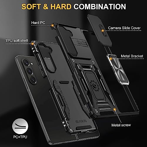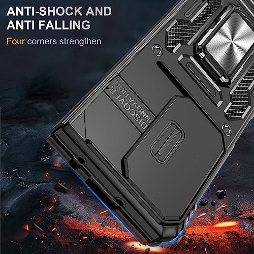 Galaxy Z Fold5 リング ケース 全面保護 耐衝撃 スタンド機能 カバー ケース PC+TPUバンパー レンズ保護 車載ホルダー対応 指紋防止 黄ばみなし 薄型 滑り止め 擦り傷防止 落下防止 耐久 スマホケース ギャラクシーzフォールド5 携帯カバー 黒