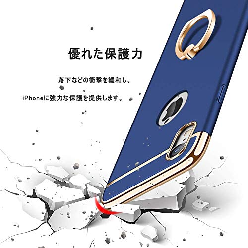 iPhone XR リング ケース 衝撃防止 全面保護 耐衝撃 指紋防止 スタンド機能 3パーツ式 アイフォンXR ケース 落下防止 薄型 スクラッチ防止 着脱しやす 擦り傷防止 取り出し易い 携帯カバー[青]