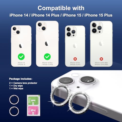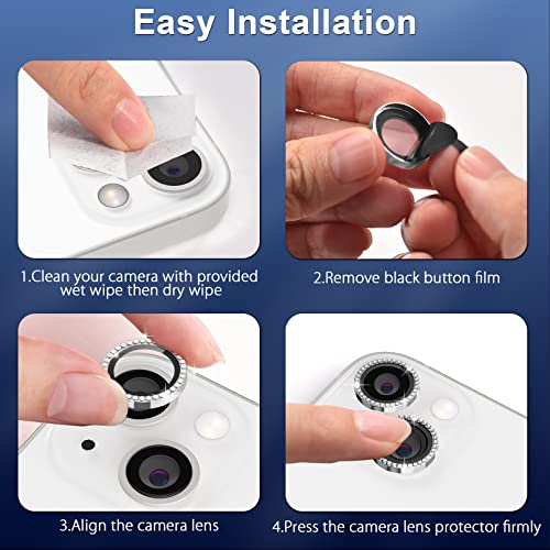 iPhone14 / 14 PlusとiPhone 15 / 15plusとiPhone 16 / 16plus用 カメラレンズカバー カメラフィルム チタン合金製 iphone14 / 15 / 16用カメラレンズ保護フィルムガラス キラキラ 耐衝撃 防塵 高透過率 露出オーバー防止 キズ防止 黒縁取り 硬度9H 全面保護 貼り付け簡単(シルバー)