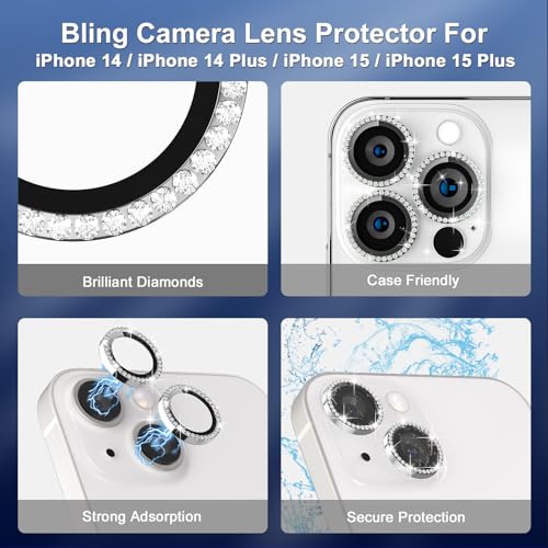 iPhone14 / 14 PlusとiPhone 15 / 15plusとiPhone 16 / 16plus用 カメラレンズカバー カメラフィルム チタン合金製 iphone14 / 15 / 16用カメラレンズ保護フィルムガラス キラキラ 耐衝撃 防塵 高透過率 露出オーバー防止 キズ防止 黒縁取り 硬度9H 全面保護 ...