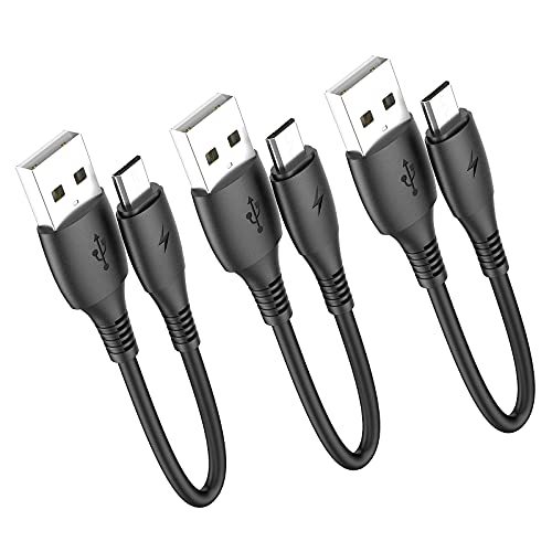 マイクロUSBケーブル0.15mショートコード [3本 15cm] Android Micro USB Charger Galaxy S7 S6 S7 Edge S5 Note 5 PS4 PowerBankなどの耐久性のあるショートケーブル急速充電コード