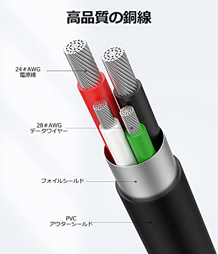 【急速充電】24AWG銅線コアとUSB2.0(480Mbps)で3Aの電流急速充電をサポートPCでのデータ転送