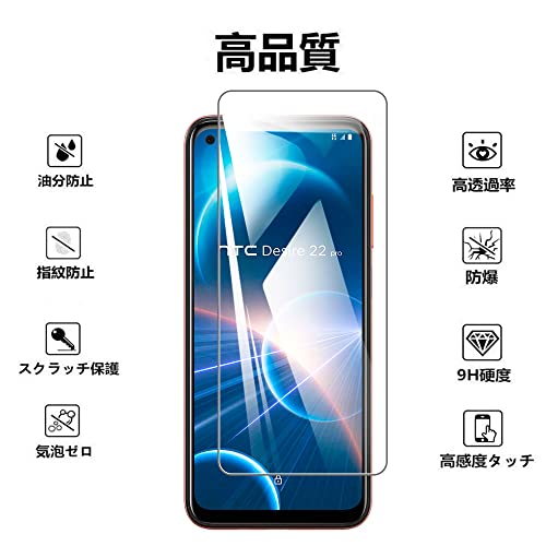 [2枚セット] HTC Desire 22 pro ガラスフィルム HTC Desire 22 pro フィルム 強化ガラス 保護フィルム 硬度9H 気泡ゼロ 飛散防止 高感度 高透過率 衝撃吸収 指紋防止 貼り付け簡単 液晶ガラス フィルム (for HTC Desire 22 pro )