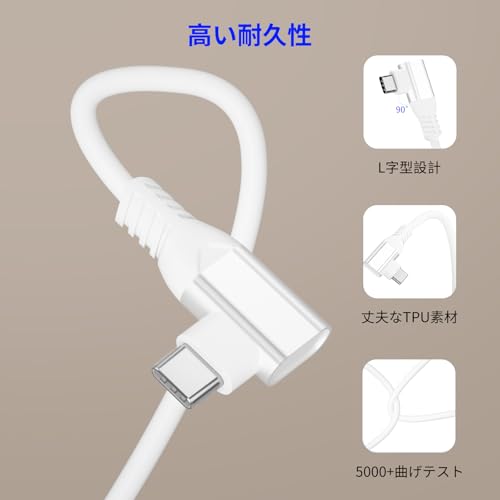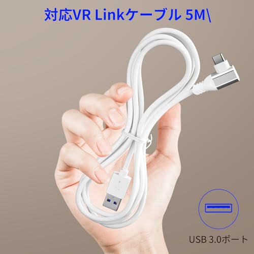 リンクケーブル 5M 対応Quest 3 / 2 / 1 / Pro / Pico4 linkケーブル VRヘッドセット対応 L字型 USB A & Type C 5Gbps高速データ転送 対応Meta Quest3とPCの接続 メタクエスト用アクセサリー ホワイト