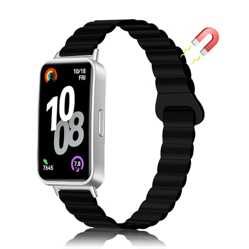 HUAWEI Band 10 / 9 / 8 交換ベルト マグネット シリコン 交換バンド 時計ベルト 磁気 シリコン 交換ストラップ 固定バックル付き 腕時計 ベルト Huawei (ファーウェイ) Band 10/9/8 (ブラック)