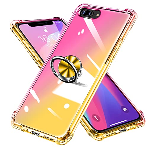 iPhone 8 Plus ケース iPhone 7 Plus用 リング クリア ケース グラデーション色 TPU ソフト ストラップホール付き アイフォン 7 Plus / 8 Plus ケース 耐衝撃 スマホケース 耐衝撃 車載ホルダー対応 携帯カバー ピンク / ゴールド