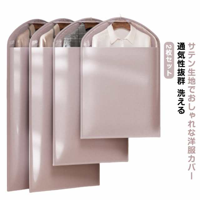 衣類カバー サテン生地 軽量 衣装カバー 半身透明 防湿 収納 防水 防虫 防塵 おしゃれ 透明 洋服カバー 2枚セット 大容量 厚手 洗える 2枚セット 高級感 型崩れ防止 レデイーズ メンズ 女性 男性 男女兼用 スーツ入れ