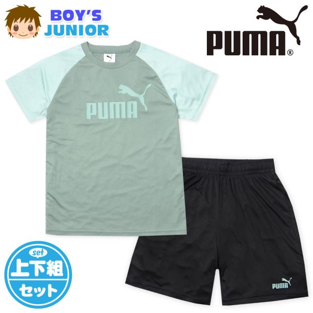 【送料無料】男児 ジュニア 吸汗速乾 半袖 Tシャツスーツ 上下組 PUMA/プーマ ショートパンツ ジャージ ポリ素材 子供服 男の子 140cm 150cm 160cm td-0905a-gn【メール便対応】