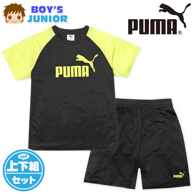 【送料無料】男児 ジュニア 吸汗速乾 半袖 Tシャツスーツ 上下組 PUMA/プーマ ショートパンツ ジャージ ポリ素材 子供服 男の子 140cm 150cm 160cm td-0905b-bk【メール便対応】