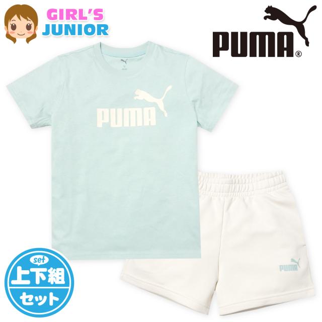 【送料無料】女児 ジュニア 半袖 Tシャツスーツ 上下組 PUMA/プーマ ショートパンツ ジャージ ロゴ 子供服 女の子 140cm 150cm 160cm td-0899b-mt【メール便対応】