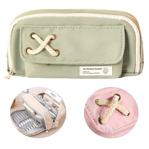 マリークワント ペンケース おしゃれ 大容量 収縮でき シンプル 人気 少女 かわいい ペンポーチ 筆入れ 無地 多機能 ツールペンケース 中小学生 大学生 男女用 帆布 ペンケース 5色 (グリ…