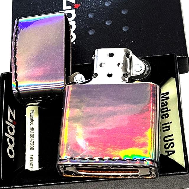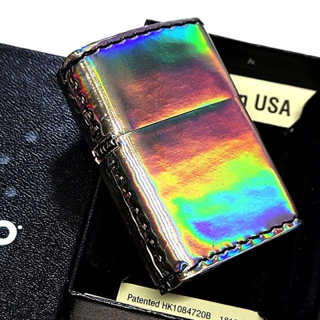 ZIPPO おしゃれ オーロラ ジッポ ライター スチール 5面加工 エナメル レインボー 綺麗 虹色 女性 レディース メンズ かっこいい ギフト プレゼント
