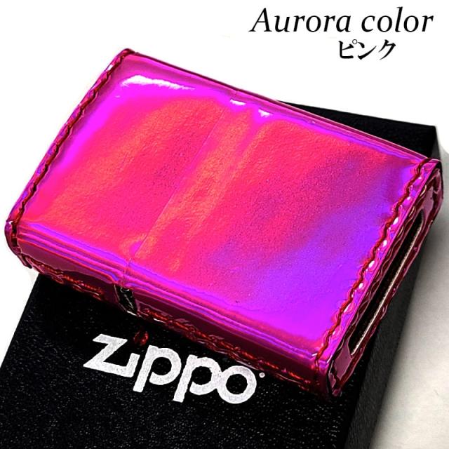 ZIPPO ライター オーロラ ピンク おしゃれ エナメル ジッポ 綺麗 5面加工 可愛い 女性 レディース メンズ ギフト プレゼント