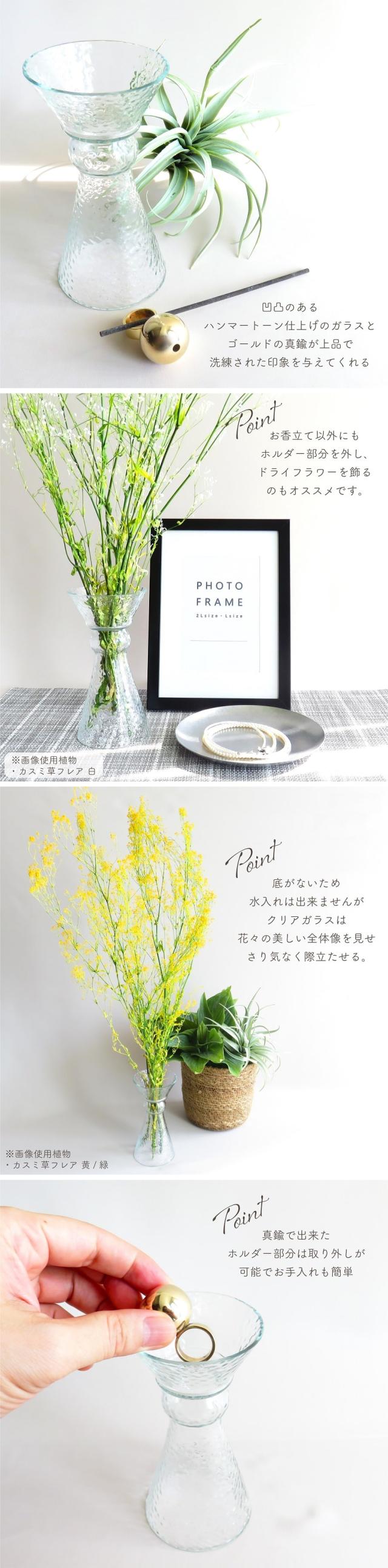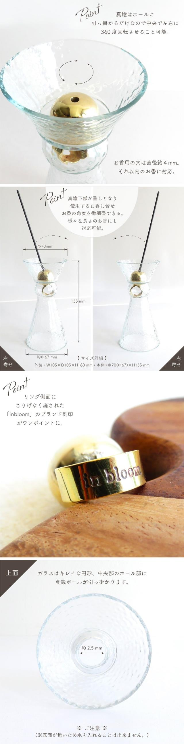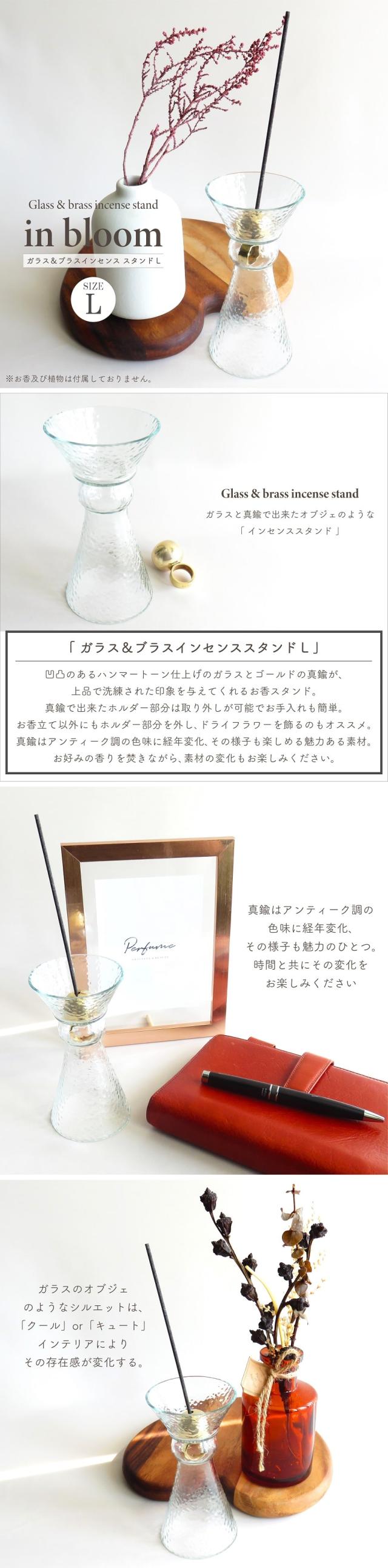 お香立て インブルーム ガラス&ブラス インセンススタンド L ハンマートーン仕上げ 真鍮 お香スタンド フラワーベース 花器 花瓶 アロマグッズ スティック インテリア