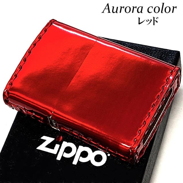 ZIPPO ライター オーロラ ジッポ エナメル レッド おしゃれ 5面加工 赤 女性 綺麗 レディース かわいい メンズ ギフト プレゼント