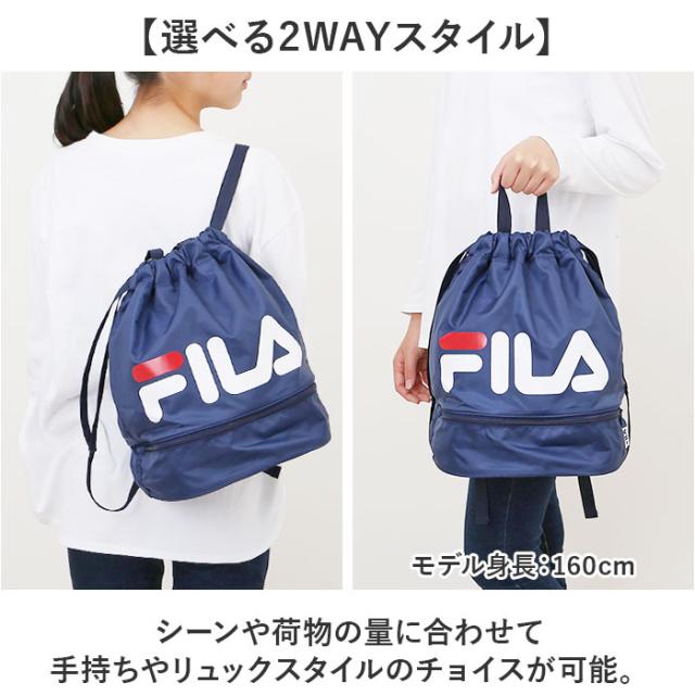 FILA フィラ リュックサック 2WAY 通販 ボンサック リュック ナップザック デイパック プールバッグ スイミングバッグ プールバック スイミングバック 2層式 カジュアル アウトドア ポリエステル 普段使い 部活 行楽 プール 男女兼用
