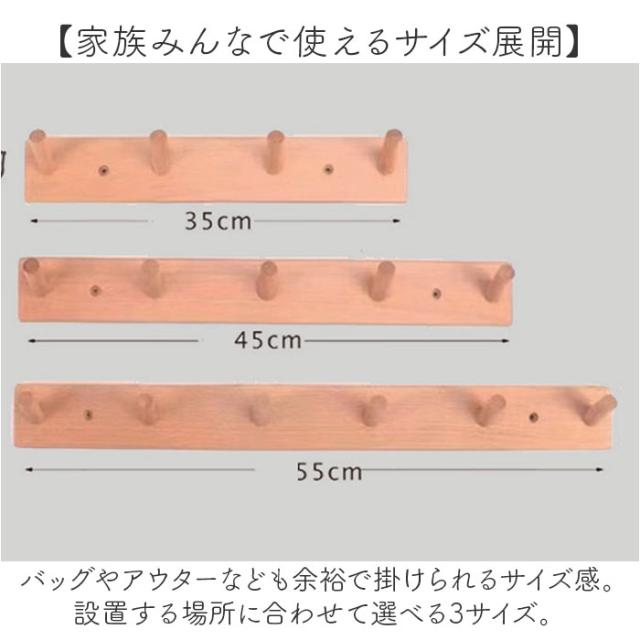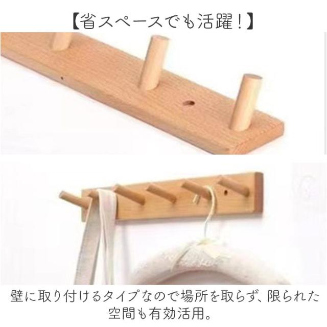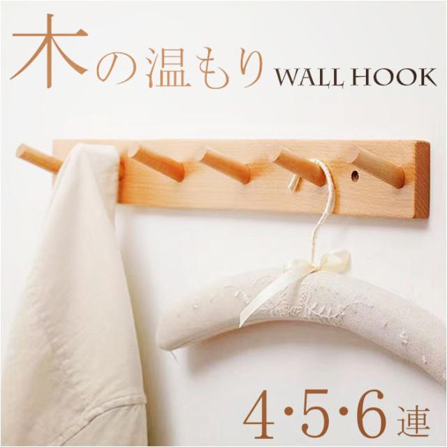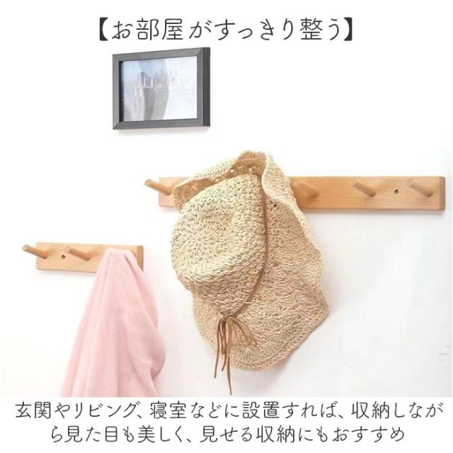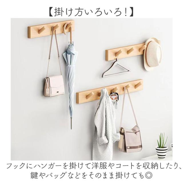 | サイズ | ・木製4連フック [縦]約5.5cm/[横]約35cm/[奥行]約6.5cm ・木製5連フック [縦]約5.5cm/[横]約45cm/[奥行]約6.5cm ・木製6連フック [縦]約5.5cm/[横]約55cm/[奥行]約6.5cm ※サイズは当店計測の実寸サイズです。実際の商品ならびにメーカー表記サイズとは多少の誤差が生じる場合がございます。あらかじめご了承ください。 |