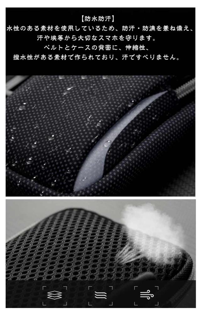 | スマホも入るアームバンドポーチ! 【抜群な収納力】スマホ用アームバンドはスマホを完全に収納できるポーチタイプです。 【バンド調節可能】伸縮性の優れたバンドの長さを、マジックテープで自由に調節できますため、男女問わずご利用いただけます。アーム用はもちろん、手首用でも使用できます。 【持ち運び便利】ジョギングなどに活用可能。ケースの底部にはイヤホン用のホールがあります。スマホをケースに入れたまま有線のイヤホンも使用可能です。音楽を聴きながらスポーツを楽しめます。 【防水防汗】撥水性のある素材を使用しているため、防汗・防滴を兼ね備え、汗や埃等から大切なスマホを守ります。ベルトとケースの背面に、伸縮性、撥水性がある素材で作られており、汗ですべりません。 | |