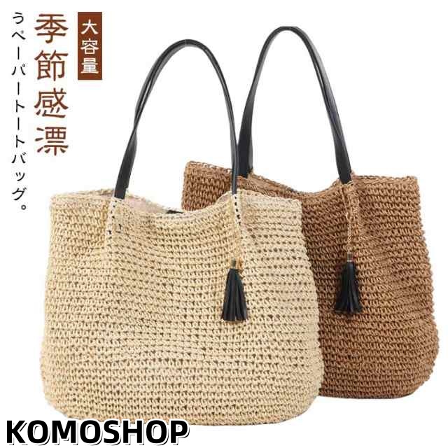 編みバッグ かごバッグ トートバッグ 夏バッグ ペーパーバック 通勤 A4 大きめ カゴトート メッシュトート 大容量 肩掛け 手提げ タッセル付き サマーバッグ カゴバッグ 送料無料 上品