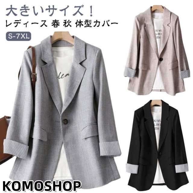 スプリングコート レディース 女性 アウター スーツ 長袖 テーラード テーラードジャケット 秋 ライトアウター 春 大きいサイズ トップス 羽織 ゆったり 大人 通勤 OL フォーマル カジュアル 大きいサイズ 体型カバー オフィス 冠婚葬祭 入学式 黒