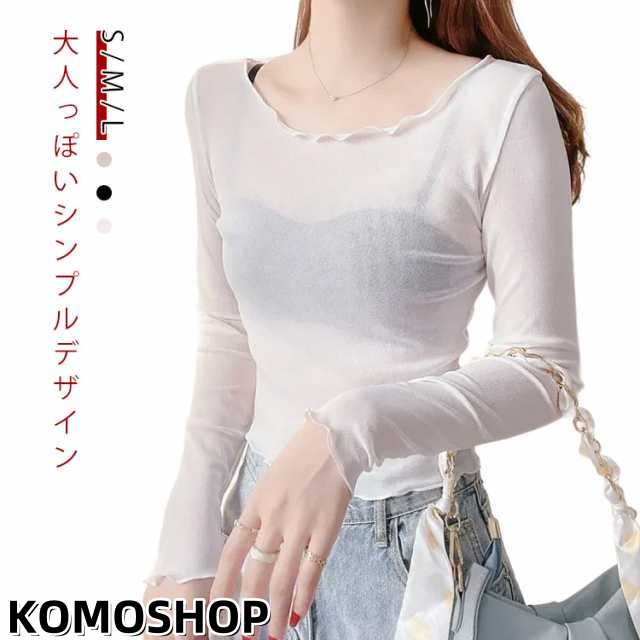 シアートップス シースルー インナー 無地 トップス ランドネック レディース 長袖 透け感 春 夏 重ね着 UV対策 シースルー トップス チュールレース レイヤード インナー 薄手 きれいめ シアー 無地 シンプル