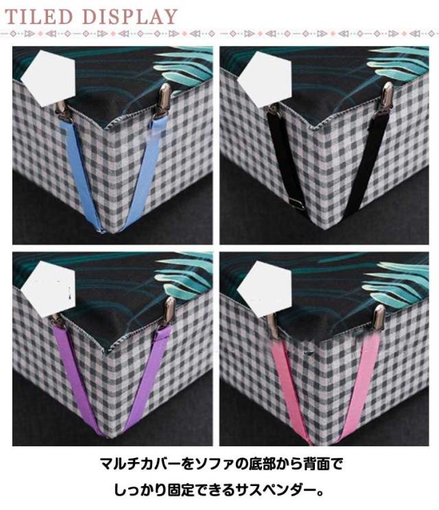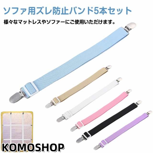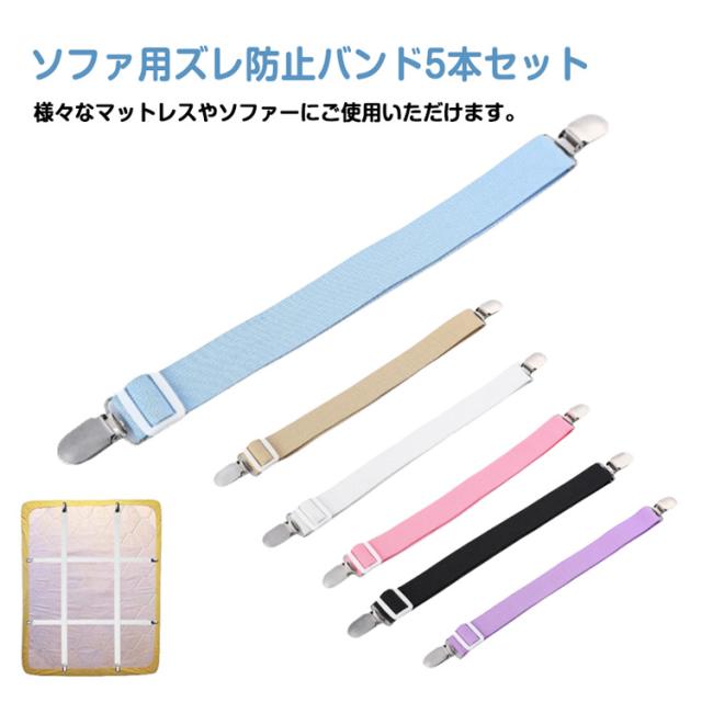 | ソファ用ズレ防止バンド5本セット。 マルチカバーをソファの底部から背面でしっかり固定できるサスペンダー。 ベルトはゴム製で伸縮性があり、金具で長さ調節も可能。カバーのズレを防止できます。 ベルトはゴム製なので、ソファやカバーのサイズに合わせてピッタリとフィットさせ、カバーのズレを防止します。 様々なマットレスやソファーにご使用いただけます。 | |