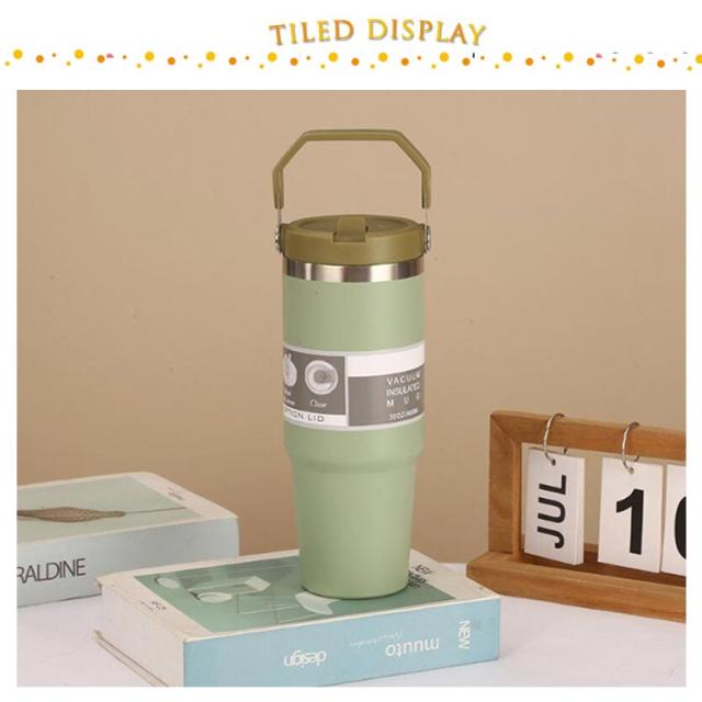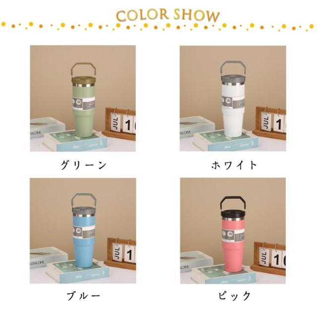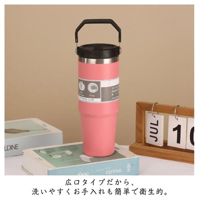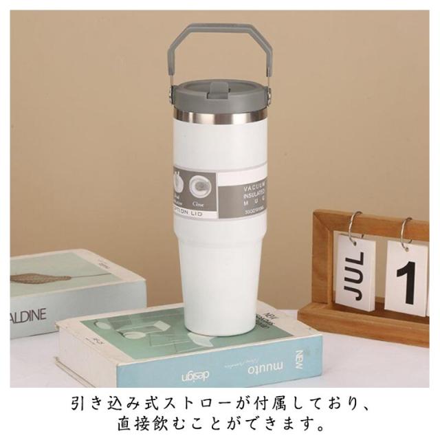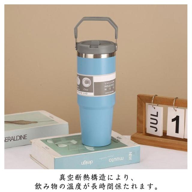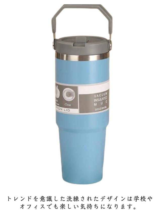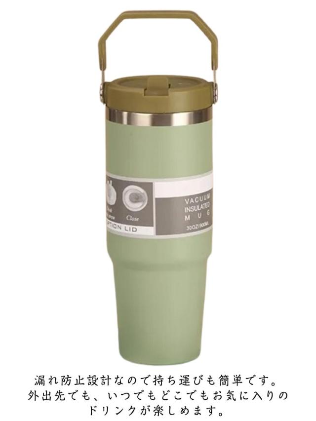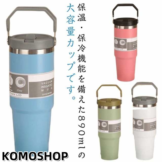 持ち運び 真空二重構造 保温 890ml おしゃれ ストロータンブラー ストロー付き 保冷 蓋付き こぼれない ステンレスボトル 水筒 かわいい マグボトル 広口 魔法瓶 直飲み 取っ手付き 大容量 タンブラー マグ マグボトル