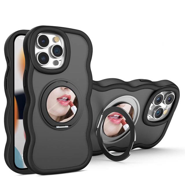 リング付き iPhone16 iPhone13 iPhone16Pro iPhone14 iPhone16 スマホケース 波型 iPhone12 マット質感 うねうね ミラー付き iPhone15Pro スタンド機能 超軽量 耐衝撃 指紋防止 360°回転 ワイアレス充電対応 ウェーブ 送料無料