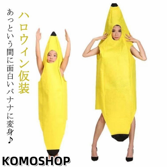 | あっという間に面白いバナナに変身♪ 誰でも簡単に受けます!着るだけでバナナに大変身できるバナナのおもしろ衣装です。 小さなお子様から大人の方まで2サイズ展開。 折りたたむと小さくなりますので、カバンに入れて会場で簡単に着替えができます! みんなお揃いでバナナ服を着て、新年会、忘年会、文化祭、学園祭など演奏やダンスのお揃いの衣装でバッチリ。 ハロウィン、クリスマスパーティ、イベント、演劇服装、学芸会、仮装パーティー、クリスマスパーティー、コミケのコスプレ変装や、演劇、映画、舞台、誕生日、様々な場面で活躍できます。 | |