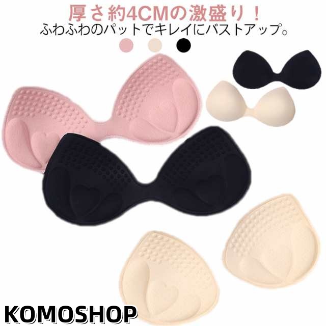| 厚さ約4cmの激盛り!ふわふわのパットでキレイにバストアップ。 しっかりと下からバストを持ち上げ、自然で美しいバストラインを演出します。 セパレート型と一体型でズレにくいのもうれしい。 通気性のある素材なので、柔らかくて肌触りが良い。 スポーツブラ、ブラトップなどブラカップポケット付きのインナーにご使用できます。 厚みのあるパッドなのでサポート性やバストアップ効果もあり つけ心地も快適なブラパッドです。 | |