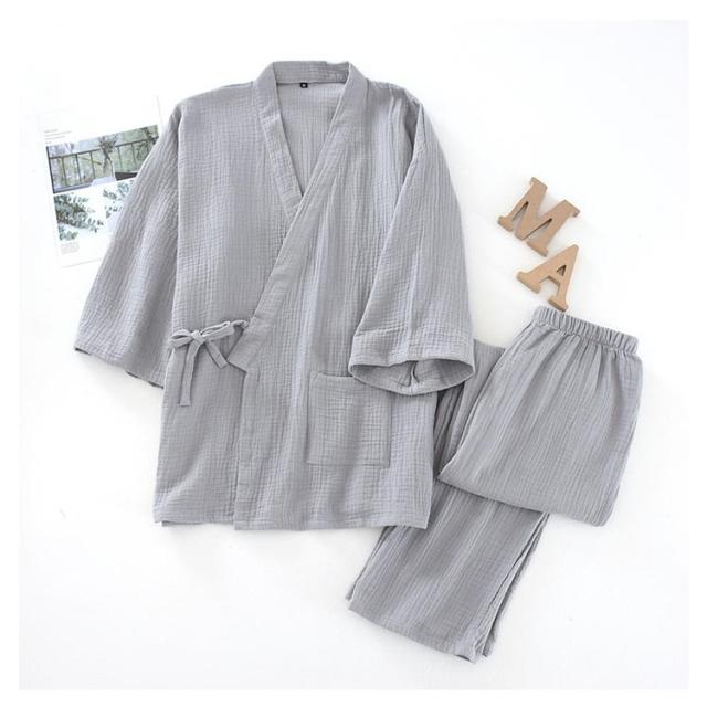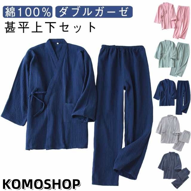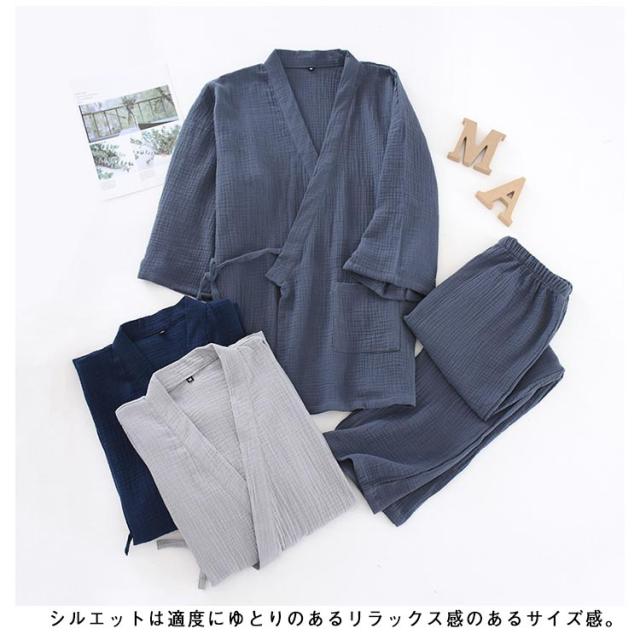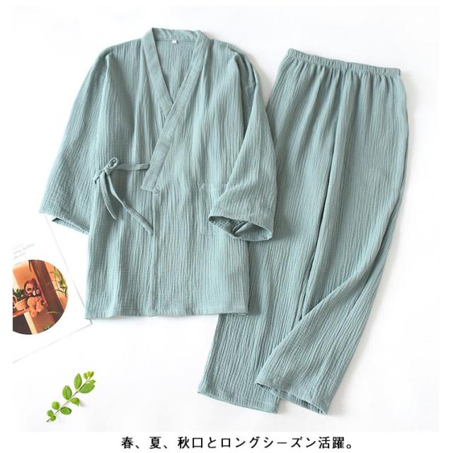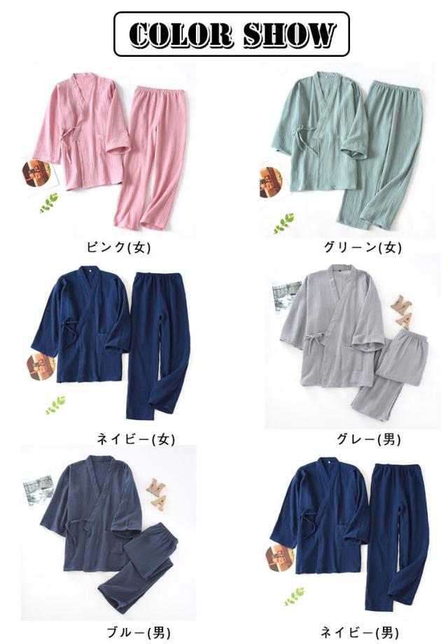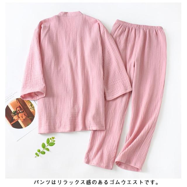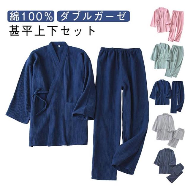 実用的 ガーゼ ルームウエア 甚平 長ズボン 浴衣 七分袖 レディース パジャマ 夏 薄手 春 パジャマ メンズ 綿100 作務衣 入院 上下セット 祖父 部屋着 寝間着 父の日 大きいサイズ 吸水 速乾 通気性 前開き 敬老の日 プレゼント ナイトウエア 父 2重 無地 シンプル