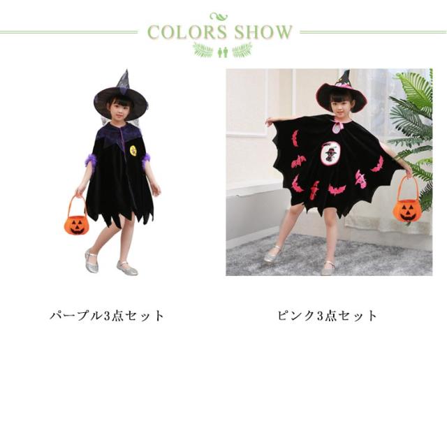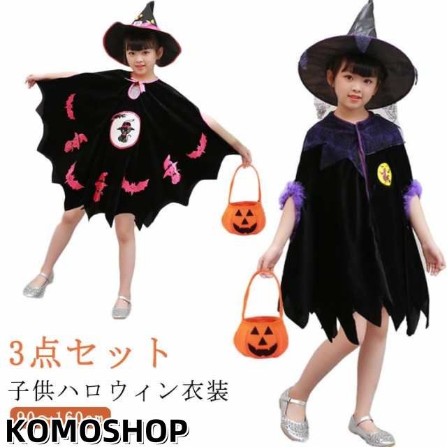 ハロウィン コスプレ 子供 魔女 キッズ ハロウィン衣装 キッズ 3点セット 演出服 かぼちゃ 可愛い 仮装 女の子 コウモリ 悪魔 魔法使い ハロウィーン衣装 送料無料 ベビ ジュニア コスチューム コスプレ衣装