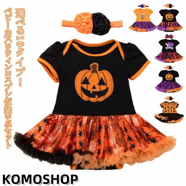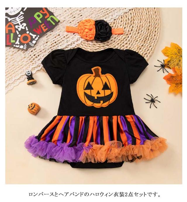 カバーオール ハロウィン 衣装 魔女 パーティー 子供 2点セット ハロウィン ロンパース かぼちゃ 女の子 ハロウィン仮装 チュールワンピース 赤ちゃん 新生児服 悪魔 ヘアバンド コスチューム衣装 ベビー服 イベント ドレス 文化祭 撮影 可愛い