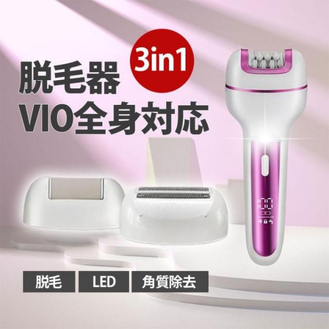 脱毛器 女性 vio対応 3IN1 LEDライト 電気シェーバー 電動角質リムーバー 防水 USB 充電式 レディース 全身 男女兼用 脱毛 多機能