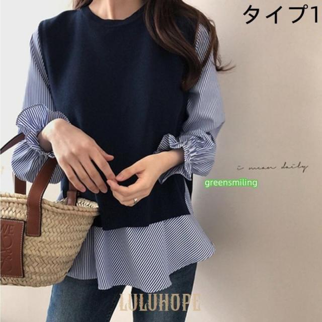ブラウス レディース ドッキング シャツ バックフリル レイヤード風 トップス ベスト